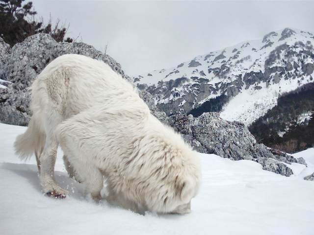 Nella foto in alto Cleopatra sul Monte Morrone. Sullo sfondo il