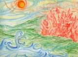 Tramonto, che vede Sorgente, bagliore ch'é rosso, |